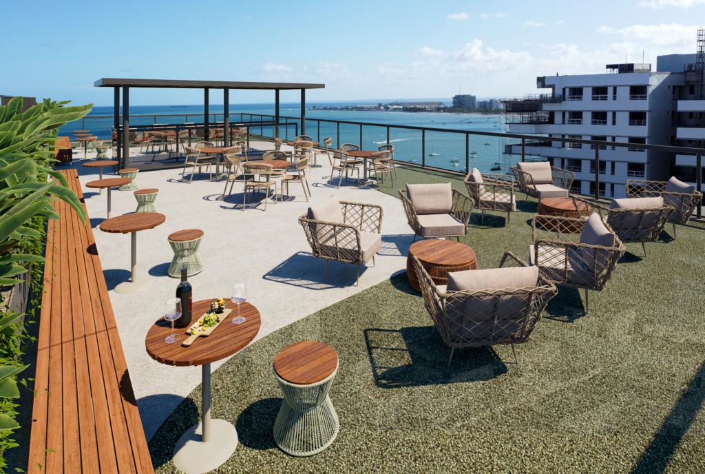 No topo, o Spot Ocean traz uma cobertura com vista privilegiada para o mar de Maceió. Com um espaço de lazer exclusivo e luxuoso, que traz a proposta de rooftop com piscina panorâmica, hidrossauna, fitness e restaurante. Um convite imperdível para aproveitar Maceió do alto, com o azul do oceano como cenário.